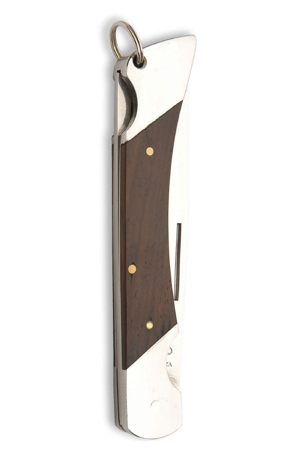Built with robustness in mind, the Elite Series features a solid metal handle adorned with a pressed wood panel, ensuring both strength and elegance in every detail. Unlike other series, the Elite pocket knife boasts a blade that locks securely into place once fully open, providing added safety and stability during use.